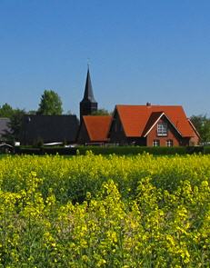 Am 4. Juli 1862 zerstörte ein Blitzschlag den alten gedrungenen Kirchturm. Der neue 42 Meter hohe Kirchturm wurde 1866 auf einem massiven Backsteinsockel aus Holz gearbeitet. Er ist weithin in der Marsch sichtbar.