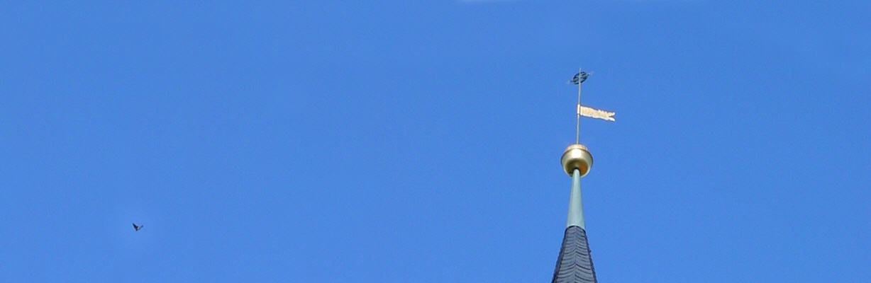Foto oben: Die hübsche Windfahne auf dem Kirchturm der Haselauer Heilig - Dreikönigskirche, darunter die Turmkugel.
