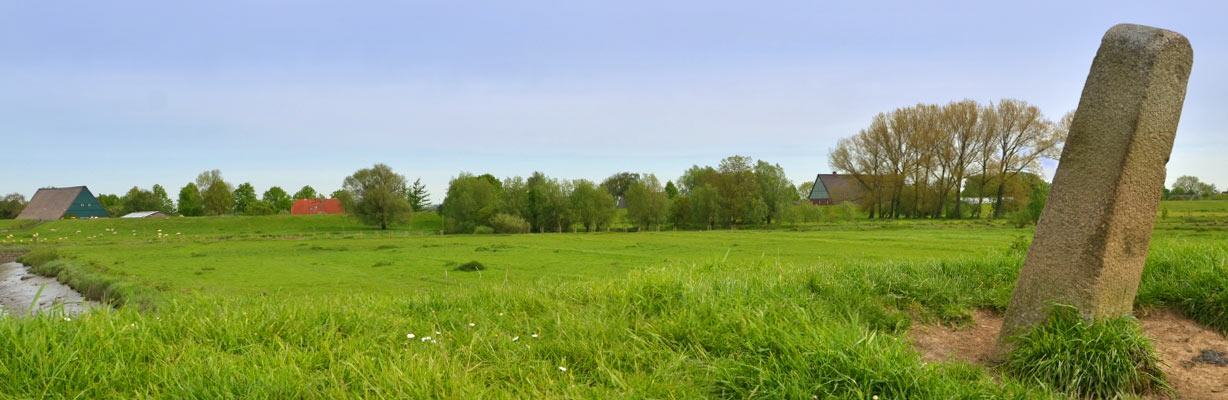 Historischer Grenzstein auf dem Pinnaudeich beim Schöpfwerk Altendeich. Ein alter dänischer Grenzstein aus dem Jahr 1821 steht mitten auf dem Pinnaudeich nahe dem Schöpfwerk an der Straße Audeich. Er trägt die Inschrift "HP", das könnte "Herrschaft Pinneberg" heißen. Der Stein ist gut zugänglich, da an dieser Stelle eine Treppe auf den Deich hinauf führt.