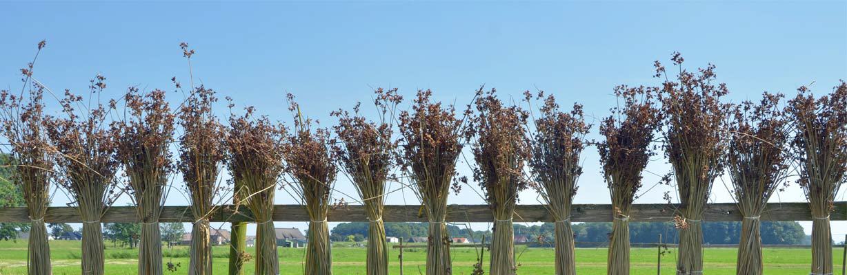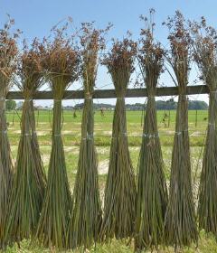 Die geschnittenen Binsen werden mit Booten zum Haseldorfer Hafen transportiert, auf einen Hänger umgeladen und zu einer Wiese in Scholenfleth gefahren. Dort werden die Binsen fächerförmig ausgelegt und wenn sie so etwas angetrocknet sind, werden sie gebündelt und an Gestellen zum weiteren Trocken erst auf einer Wiese aufgehängt. Später kommen die Binsen in eine Halle, wo sie von Regen geschützt weiter trocknen. Die Kunst ist, dass die Binsen zwar trocknen, aber noch biegsam und geschmeidig für die Weiterverarbeitung bleiben. Die trockenen Binsen werden an spezielle Abnehmer verkauft, die damit zum Beispiel Stuhlsitze und Rückenlehnen für Bauernmöbel flechten.