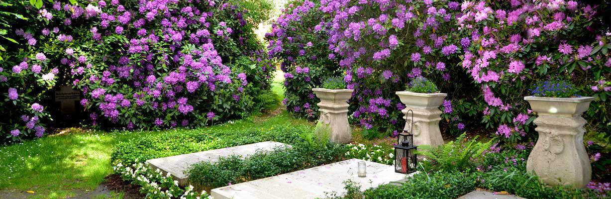Sie finden das Grab an der Südseite der Kirche hinter einem Rhododendronbusch