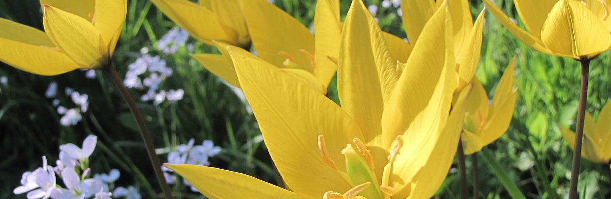01.05.2012: Vor der alten Mühle am Deich in Haseldorf blühen jedes Jahr wilde gelbe Tulpen. Es handelt sich um Tulipa sylvestris, auch Weinbergtulpe oder Waldtulpe genannt, eine ganz besondere duftende Wildtulpenart, die auf der Roten Liste der gefährdeten Arten steht.