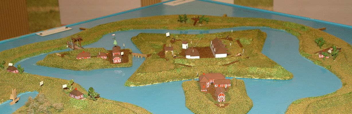 Kirche der Hetlinger Schanze um 1740. Das Modell wurde von Jonny Wrage (Hetlingen) erstellt. Die Kirche wurde am 13. Dezember 1733 eingeweiht und im Jahr 1769 abgebrochen.